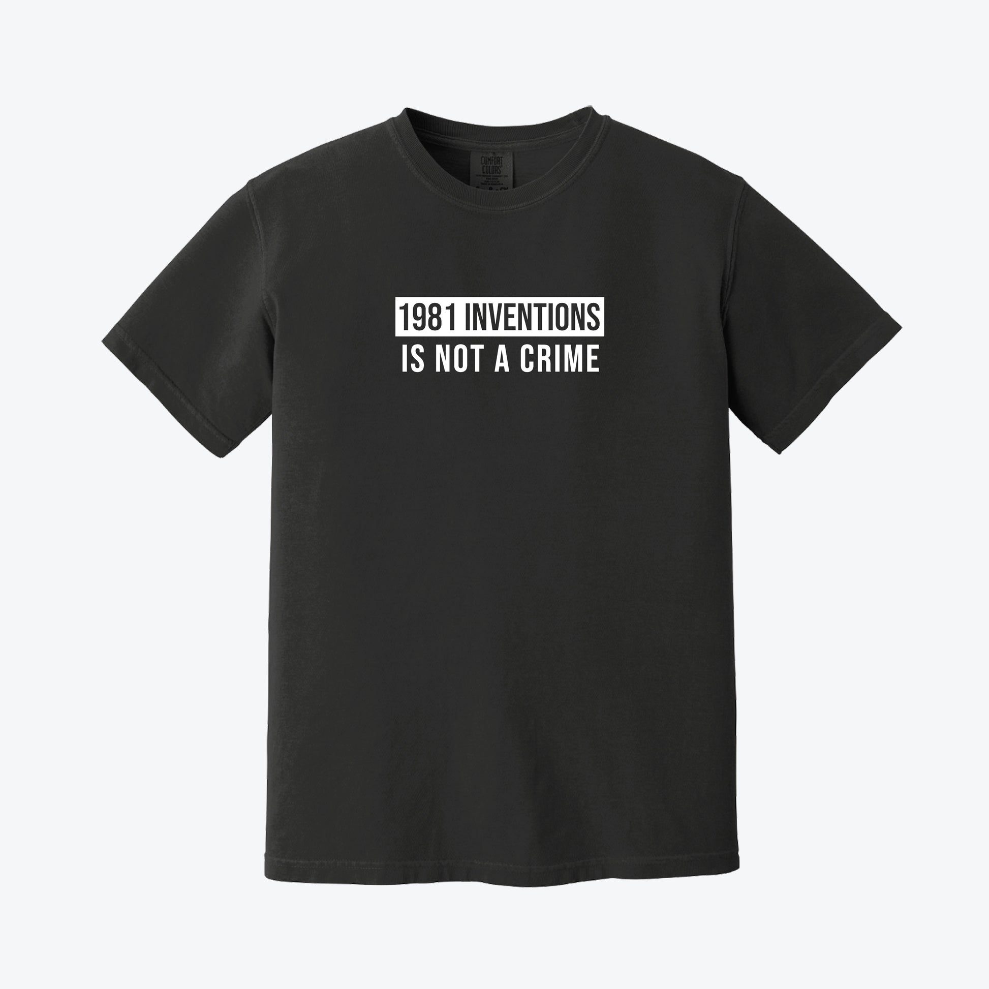 1981 INVENTIONS IS NOT A CRIME tee